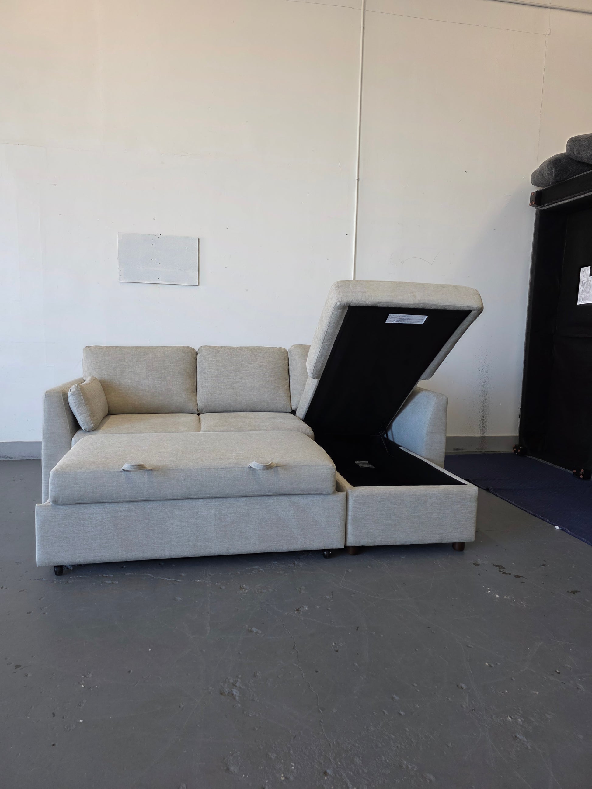 Coddle Luke Fabric Sleeper Sofa with Reversible Chaise and Storage, Beige