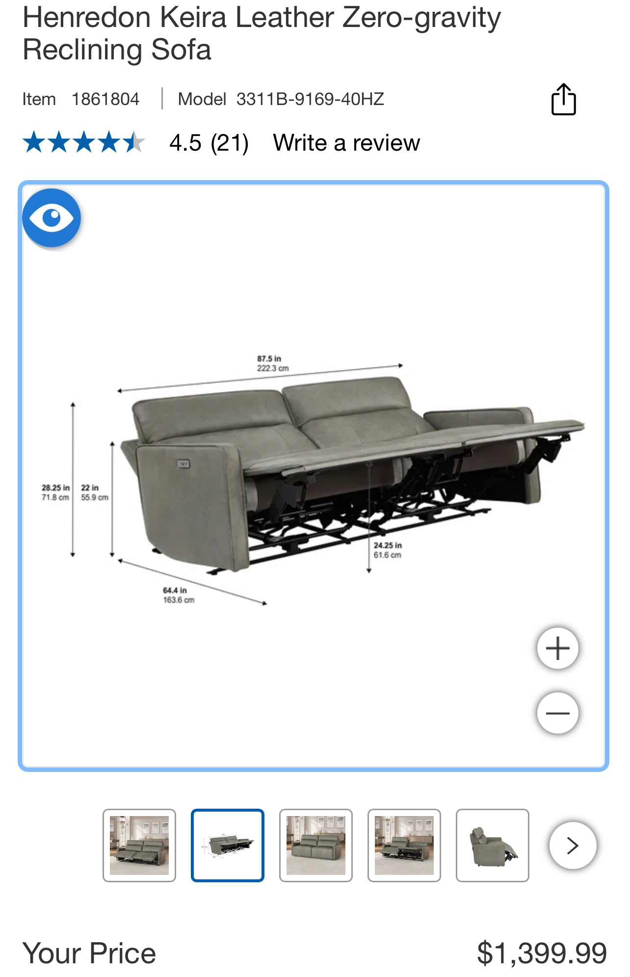 Sofa: 88W X 36D X 40H